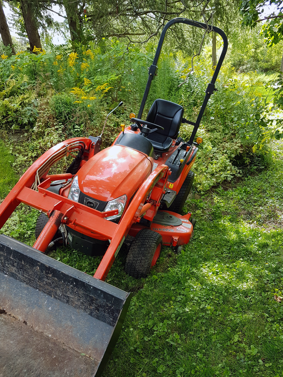 Just a refresher, Wiley is a Kioti CS2410. His mower deck is a Kioti SM2410. It’s a belly mower, meaning it rides under Wiley’s middle (as opposed to the mowers that are towed behind a tractor).