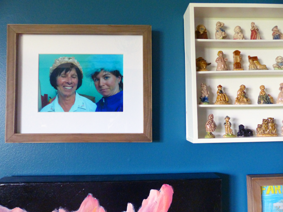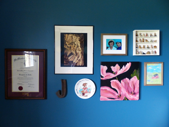 When it came to art, I wanted to display some of my favourite things–like this collection of vintage hats. My Mom taught me how to sew. She learned from her mother–the original owner of most of these hats. In fact, my great-grandmother made one of the hats that is hanging on the wall.