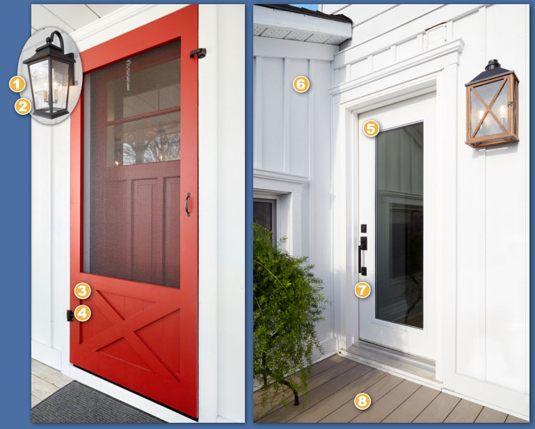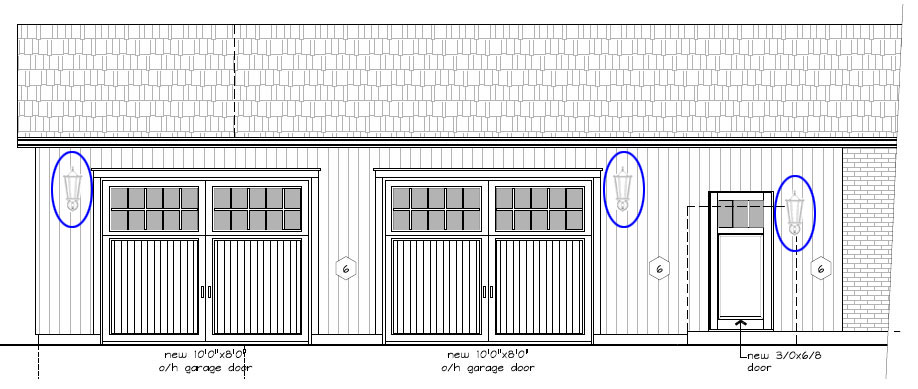 I’m leaning toward a lantern style light on either side of the garage. This graphic from Farmhouse Facelift shows two options that appeal to me: a traditional lantern and rustic wood design that I haven’t seen before.