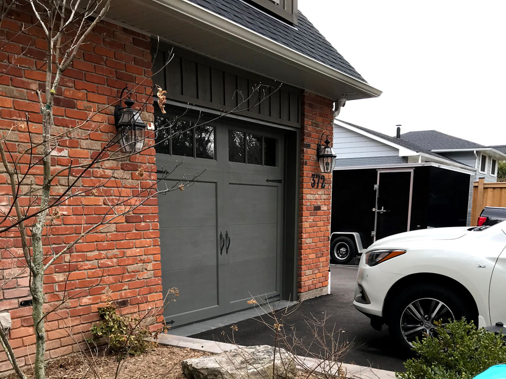 However, the carriage doors I like the most are all overlay doors. In an overlay, the panels or strips are applied by hand. This translates to more expensive. As well, there are sometimes issues with getting the overlays to line up between each section of the garage door.