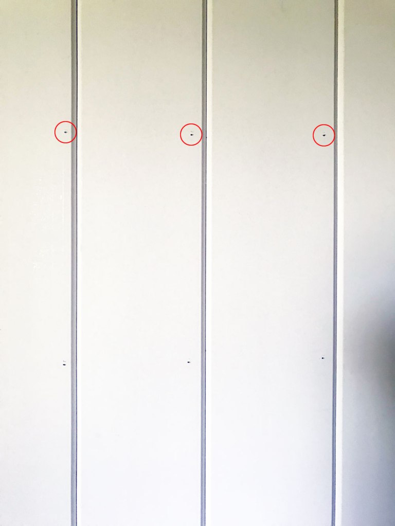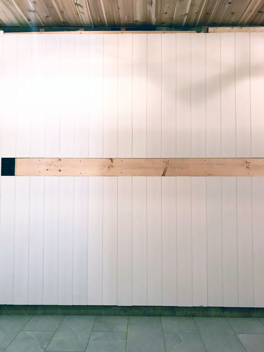 One surprise with this V-groove is it’s not a true tongue and groove. Each board has a very small overlap, so my contractors ended up having to face nail each piece in a few spots. Lots of tiny holes for me to patch.