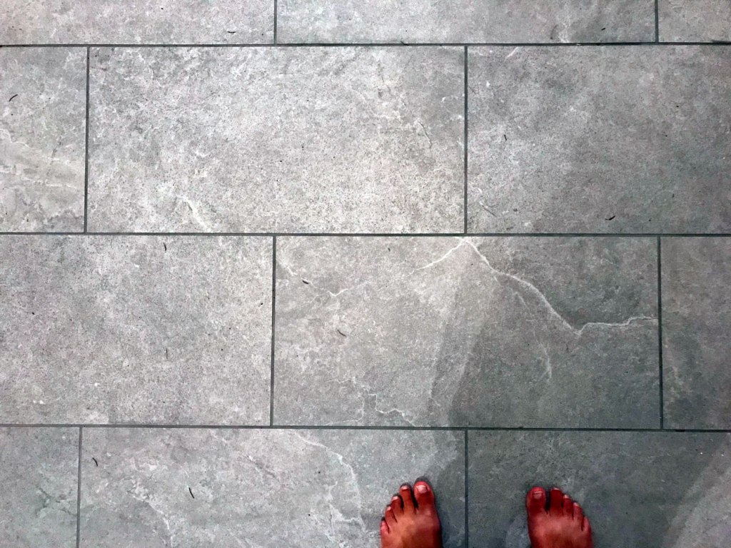 I went with a mid-grey porcelain tile. You may recall my biggest criteria with the tile was maintenance. I will not be cleaning this floor every day, and the tile need to hide all of the dirt that comes with a farm. We also chose a dark grey grout for the same reason.