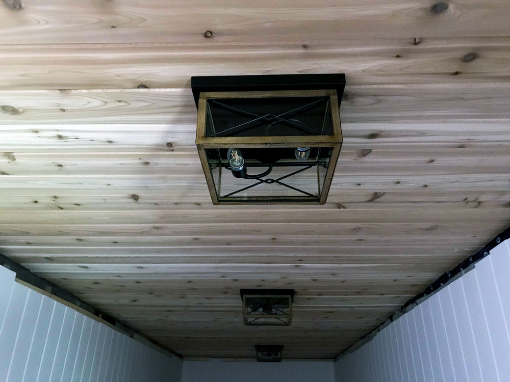 The ceiling is a really, really special feature. This is cedar V-groove that I found at a local supplier. I will be leaving this natural, as I love the tone so much.