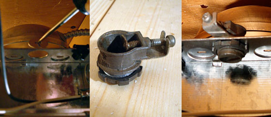 From left to right, removing the knock-out, the clamp that will hold the wire in place and the clamp installed.
