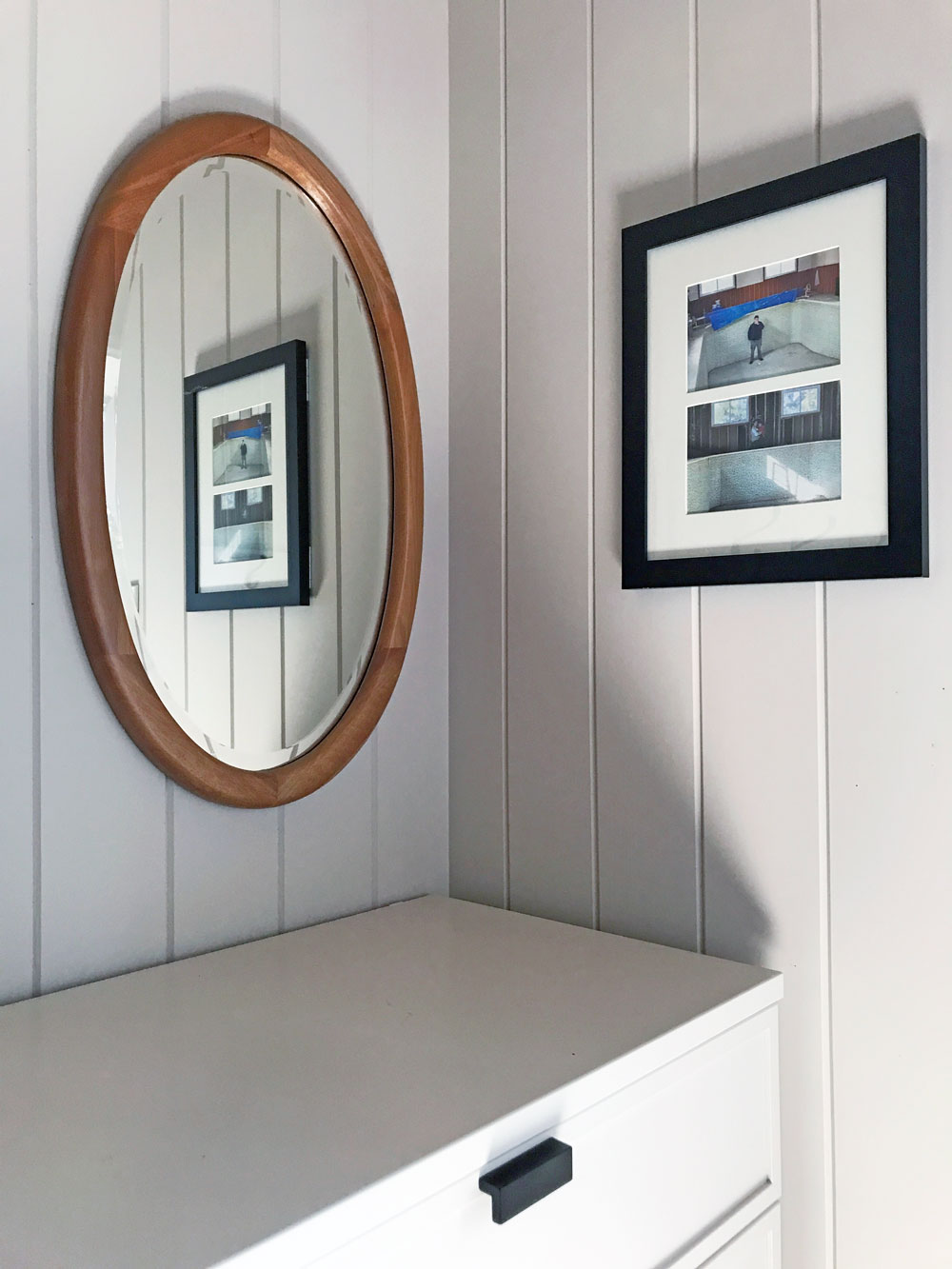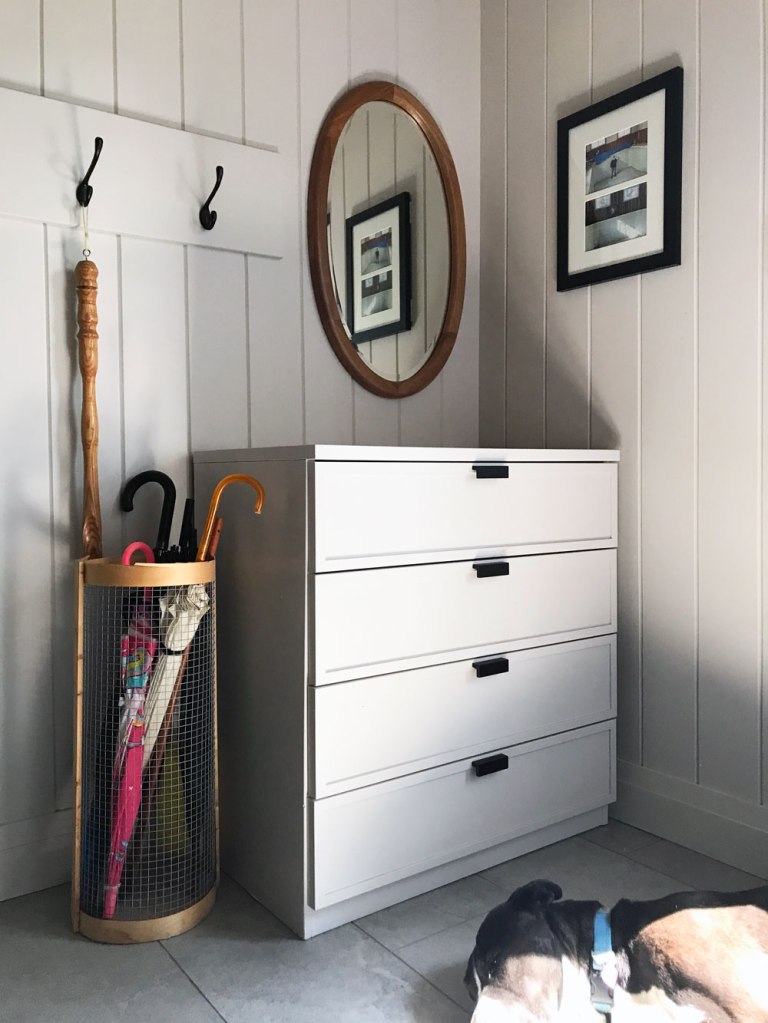 The dressers look fresh after a coat of paint to match the walls. Spraying the hardware to match the black hooks that we used in the room was the finishing touch. The dressers are likely not going to be here forever (the one on the landing is too small and the one by the door is too big), but they’re doing everything we need.