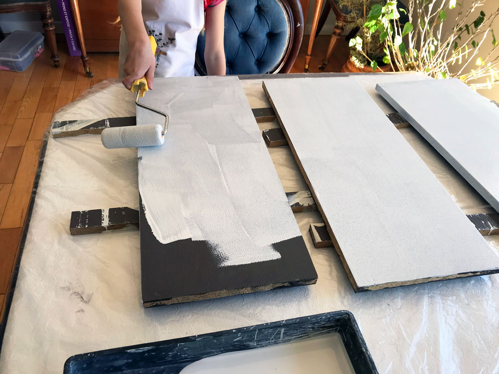 I decided to paint the bulletin board because I didn’t love the colour of the underlayment. It’s a bit yellow and not a true brown cork. Plus I liked the idea of the bulletin board blending in with the rest of the walls a bit more.