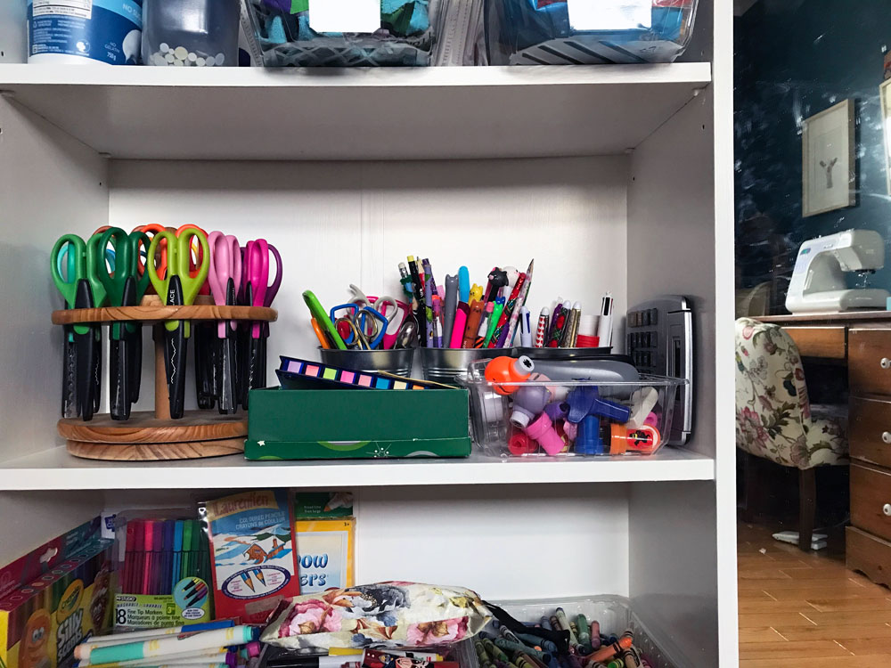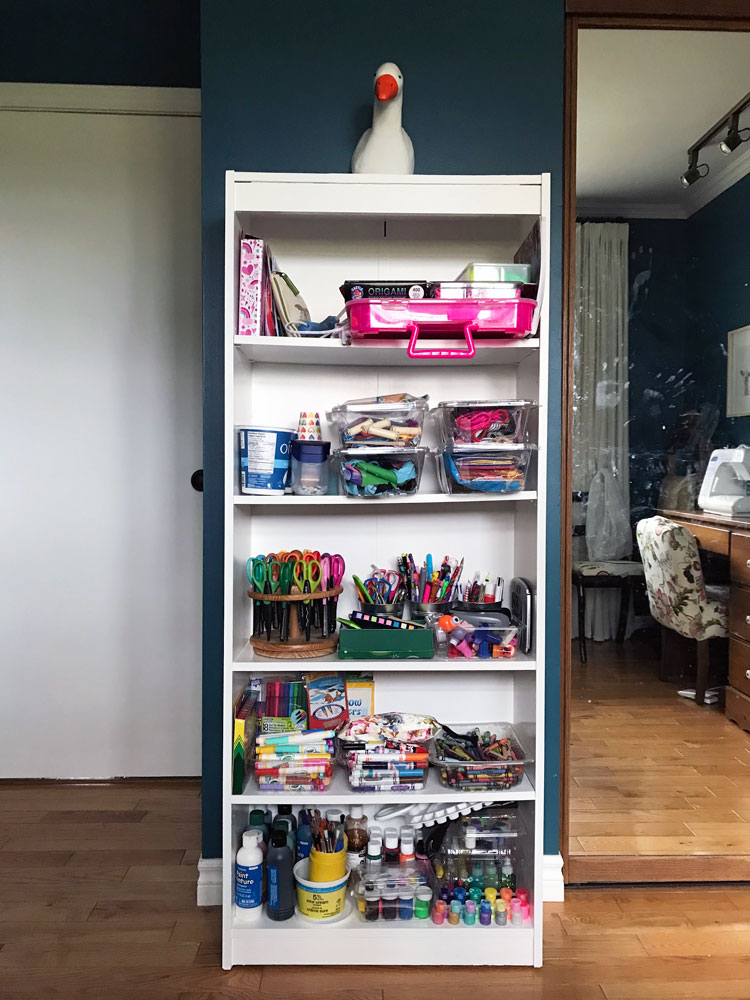 This is just the start (and it’s definitely not Pinterest-perfect), but now Ellie has most of her craft supplies in one spot, clearly visible and easily accessible.
