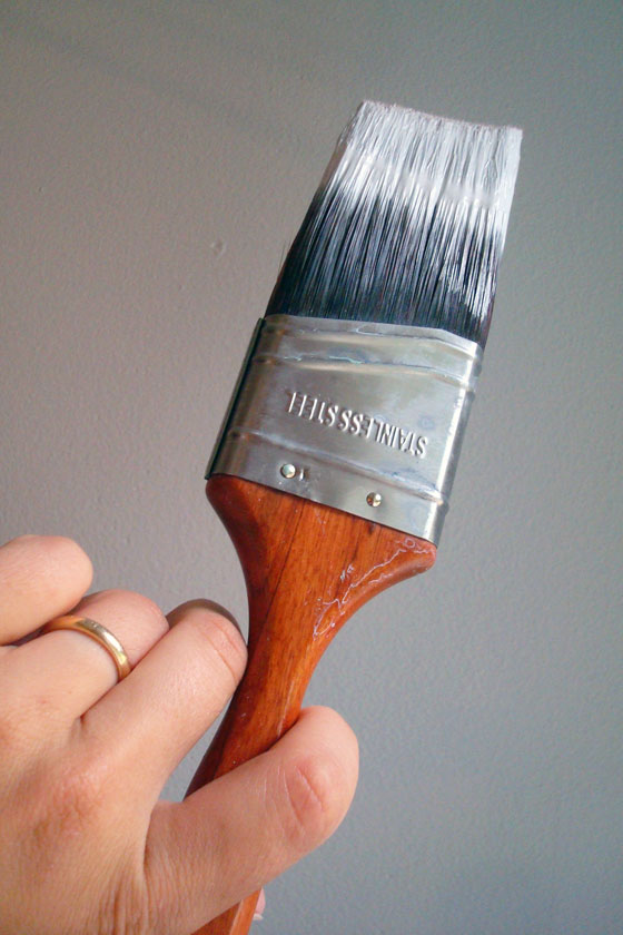 The next step is paint. Again, you don’t have to paint the whole wall. Cover the primed area completely with paint.