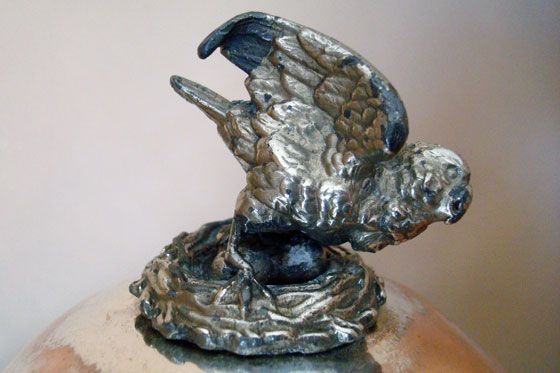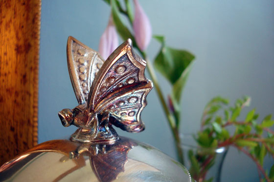My Mom has this lamp, which she had in her childhood room, and I think the two would work really well together. (She needs a new shade and some new wiring.)